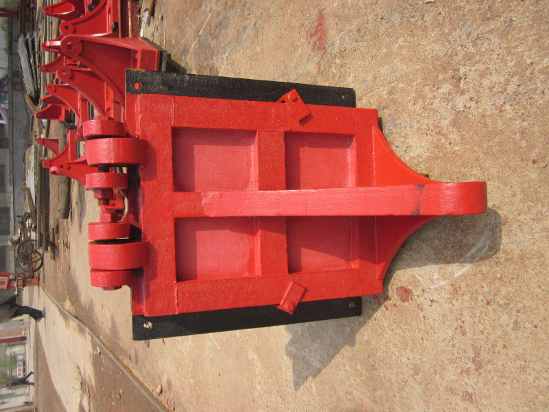 门体一般采用面板与加强肋的结构,面板可做平面或拱形。门体一般整体铸造和机加工,但尺寸较大的可采用分块组成式。门体上一般采用整体式金属止水,兼作支承滑块,金属止水用同材料制作的沉头螺钉紧固在门体上,螺钉头部与止水工作面一起精加工,一些尺寸较大的也可“P”形橡皮止水。
